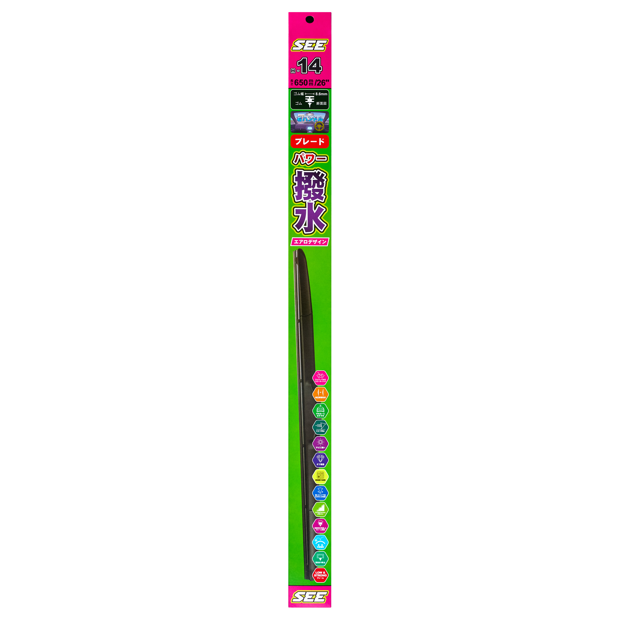 Японские щетки стеклоочистителя SEE отличаются наличием слоя графита, нанесенного по всей длине изделия. Это обеспечивает превосходные чистящие свойства и продолжительный срок службы. Такие щетки эффективно удаляют дождь, снег и прочие загрязнения с стекла автомобиля, улучшая видимость и повышая безопасность на дороге. Щетки SEE доступны в разных размерах, подходящих для широкого спектра транспортных средств.